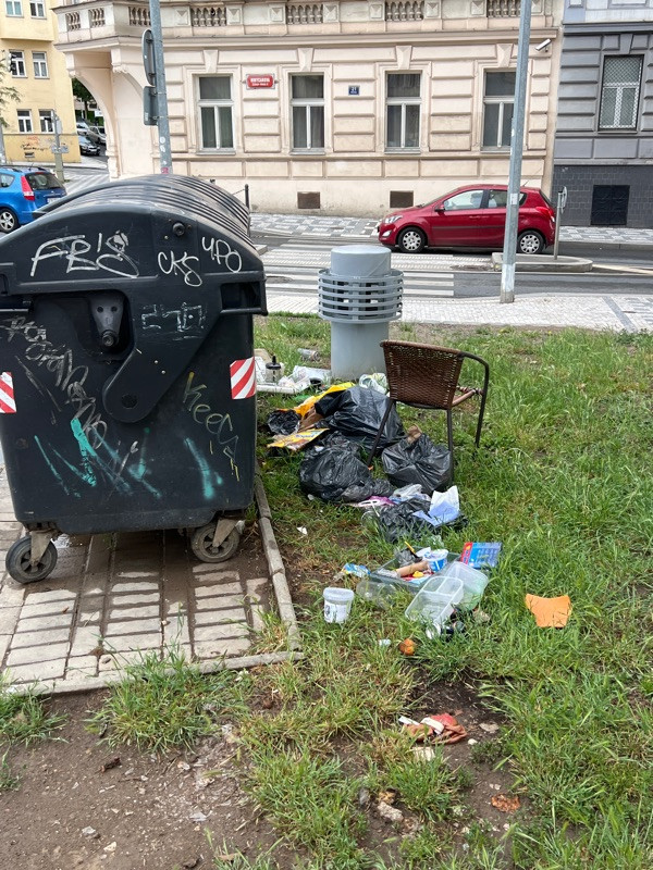 Potraviny a odpadky u kontejnerů na směsný odpad