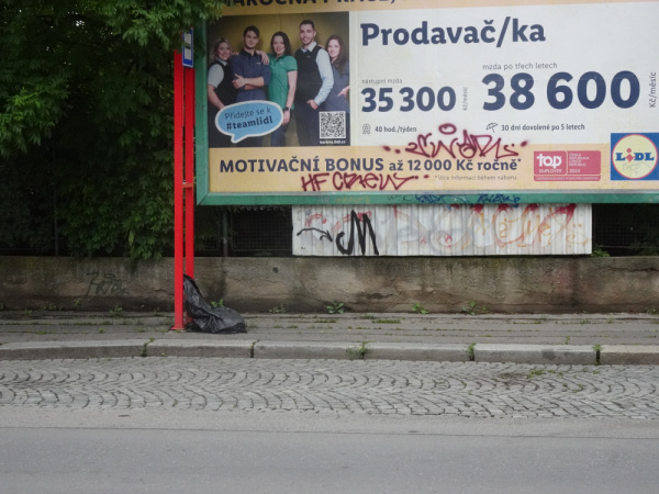 U autobusove zastavky v ulici U Nakladoveho nadrazi je vyhozeny cerny pytel s odpadem. prosim o uklid.
