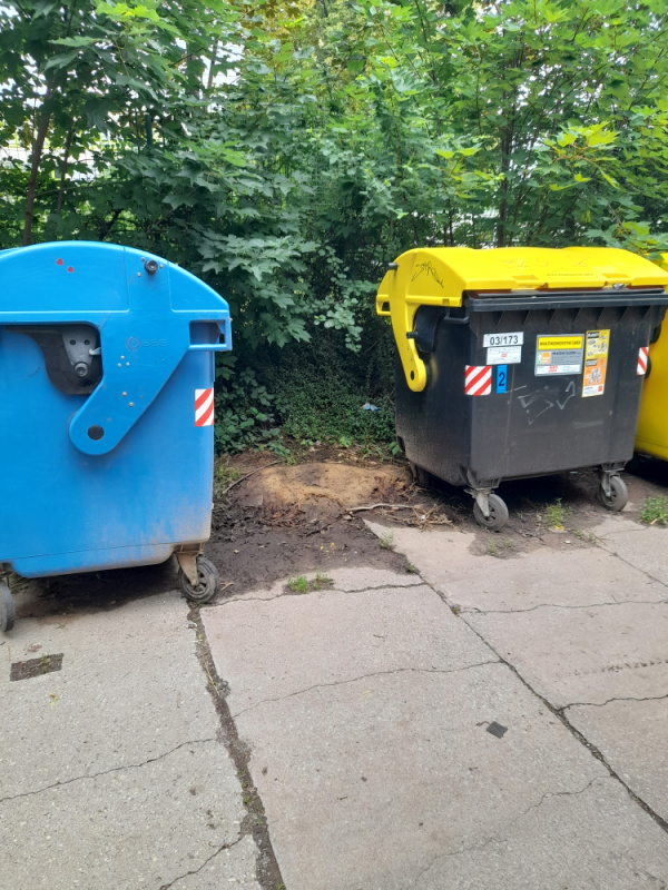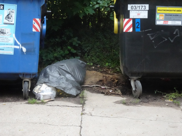V ulici na Trebesine mezi kontejnery na trideny odpad je vyhozeny pytel se smesnym odpadem. Prosim o uklid.
