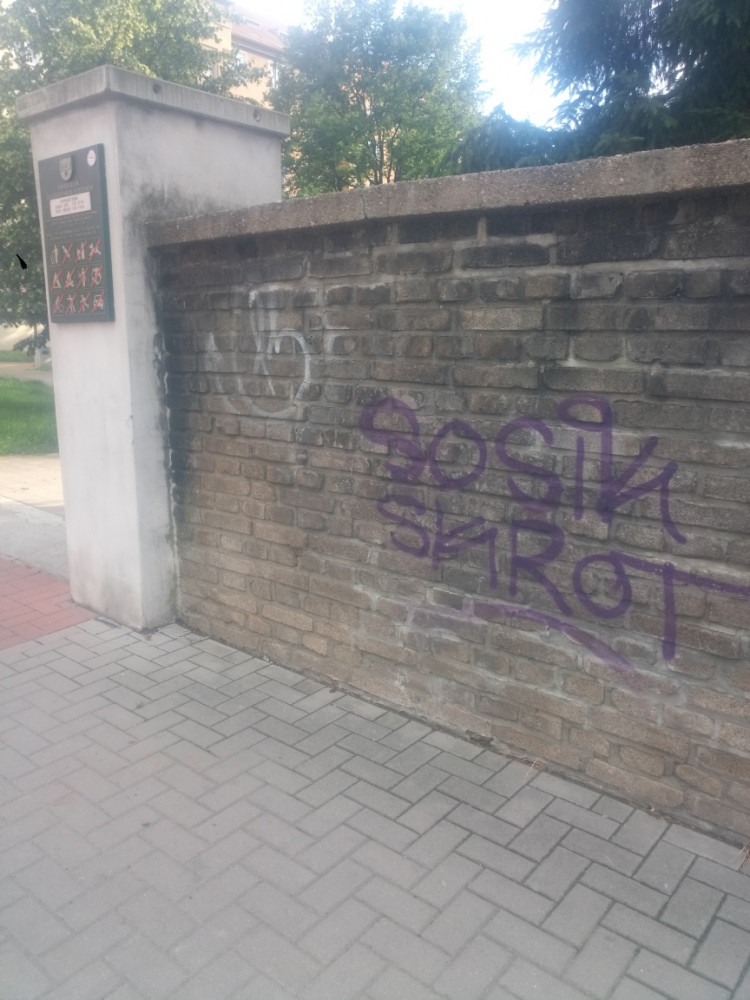 posprejovana zeď do vnitrobloku do parku