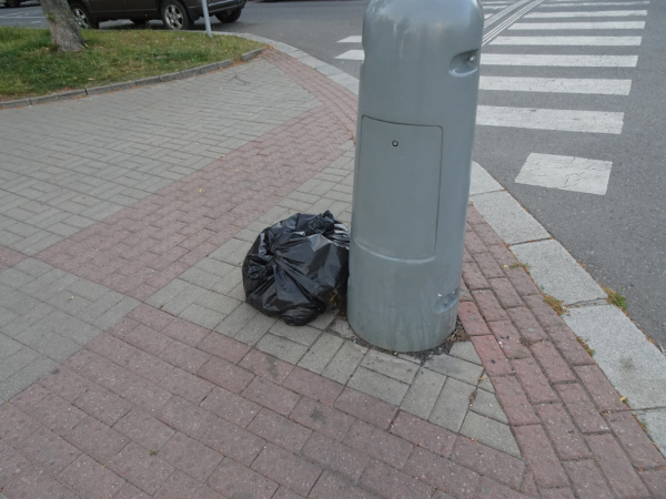Na rohu ulic Pod Lipami a Osikova je vyhozen u sloupu cerny pytel s odpadem. Prosim o uklid.