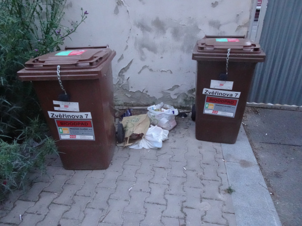 Dobry den, ve Zverinove ulici nekdo vyhodil komunalni odpad vedle sbernych nadob na bioodpad. Prosim o uklid.