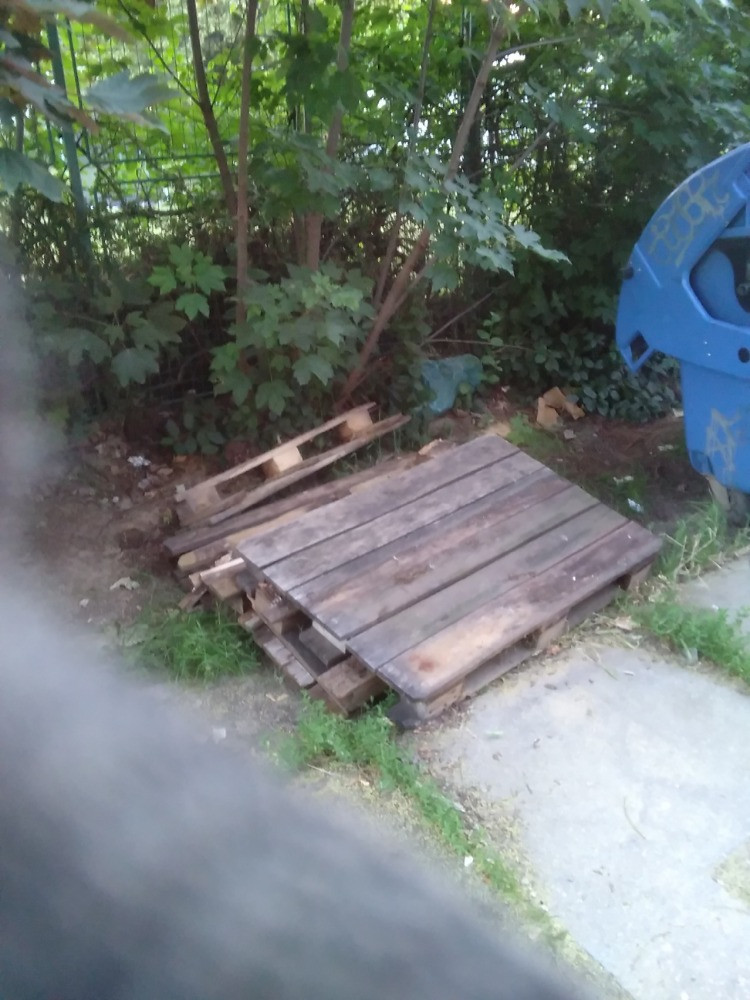 v ulici na Trebesine vedle kontejneru na trideny odpad jsou vyhazene stare palety. Prosim o uklid. (nedaleko tenisovych kurtu).