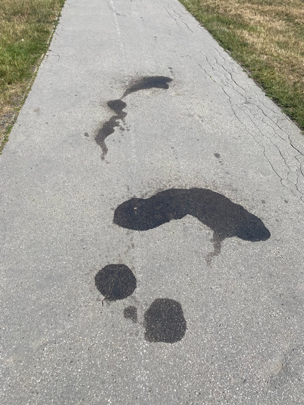 Nahlášeno od občana. Park parukářka u Vrchu svatého kříže na asfaltové cestě u laviček. Znečištěno skvrny neznámého původu.