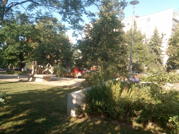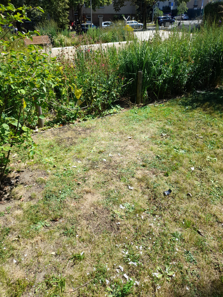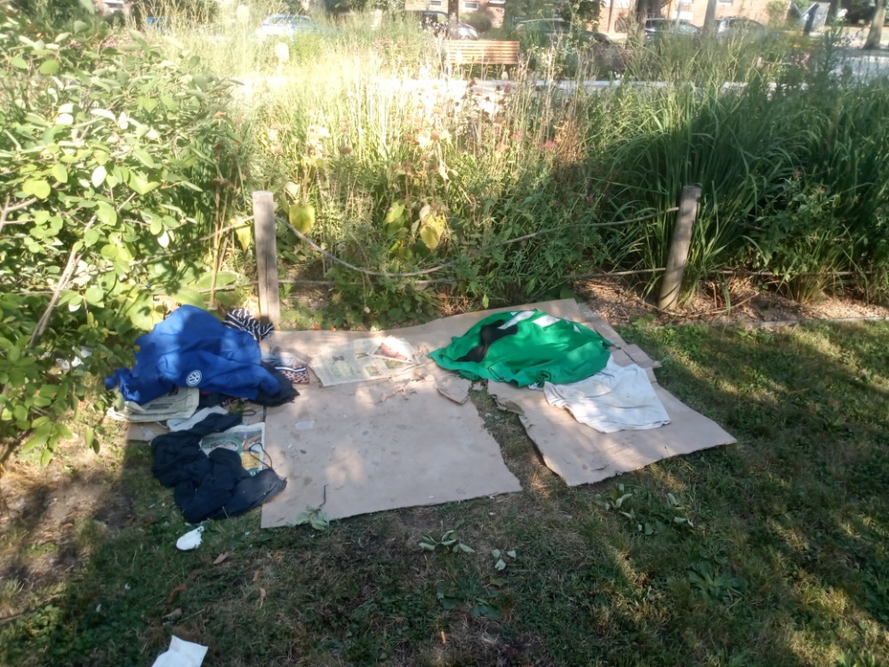 Prosím o úklid po bezdomovci. Park se sochou uprostřed, v ulici kněžská Luka, vlevo od sochy za lavičkami . děkuji moc a přeji hezký den Iveta