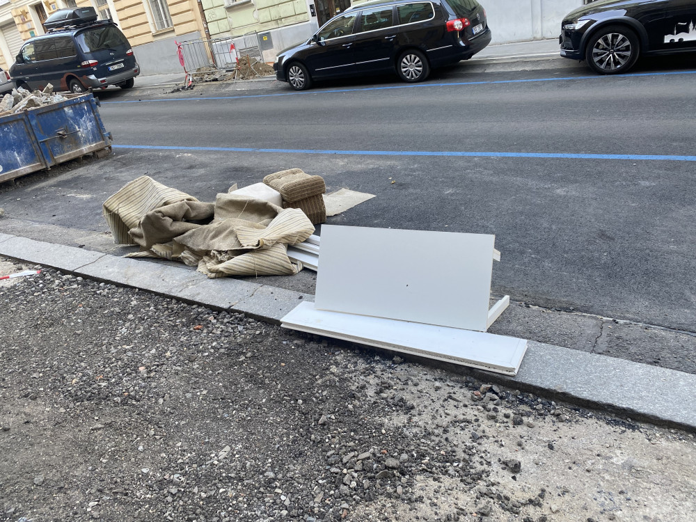 Dobrý den, někdo do kontejneru pro stavební materiál vyhodil koberec a stůl, dělníci to vyhodili zpět na ulici. Mohu vás požádat o úklid? Děkuji.