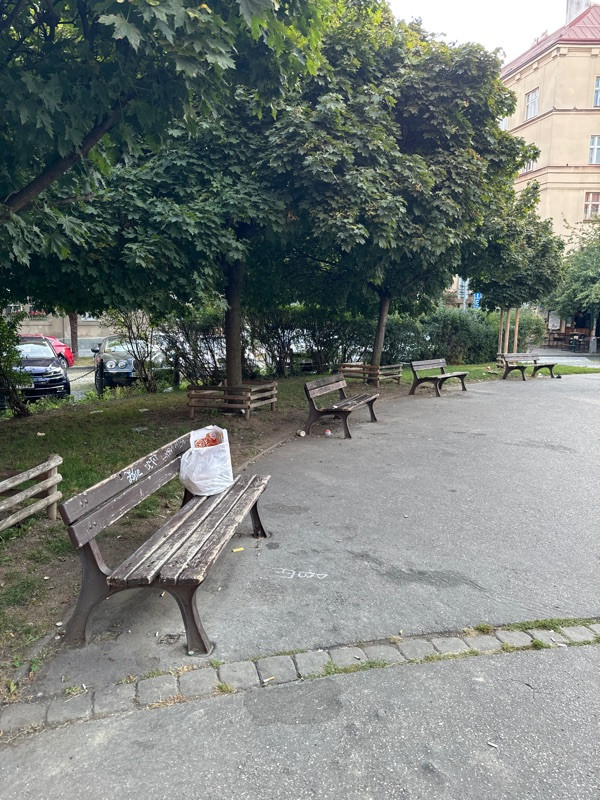 Nepořádek po celém Škroupově náměstí. Bohužel je to tak každý den. Stalo se místem pro zevlování a opíjení….. S dětma je již nemožné trávit tam čas.