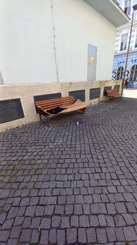 Prosím o odklizení kartonu na lavičce-Kostnické nám. Děkuji
