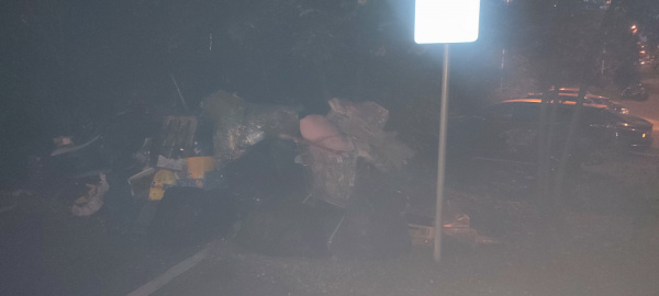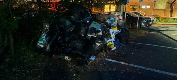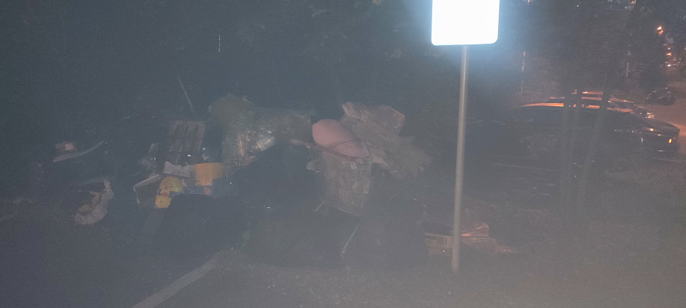 Černá skládka v ulici Pitterova u lampy, číslo veřejného osvětlení 303377. Směs odpadu v pytlích o množství cca 50 ks pytlů.