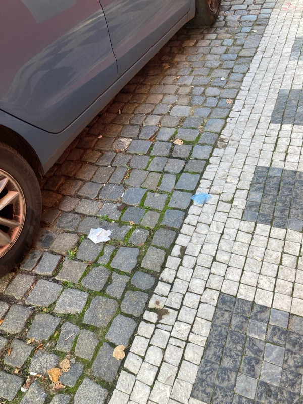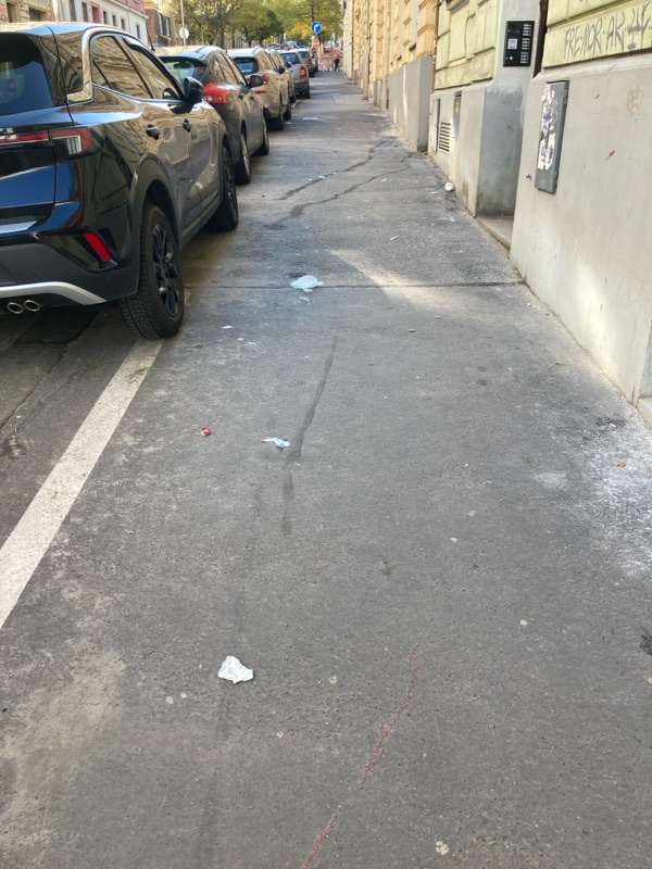 Papírky, cigarety, obaly a další odpadky na chodníku v ulici Baranova v dolní části. Zde jde o opakované upozornění - chybí zde koš, který byl asi odstraněn při opravě chodníků. Navrhuji jeden či dva koše přidat, tak jako ve vedlejší ulici Sudoměřská. viz foto