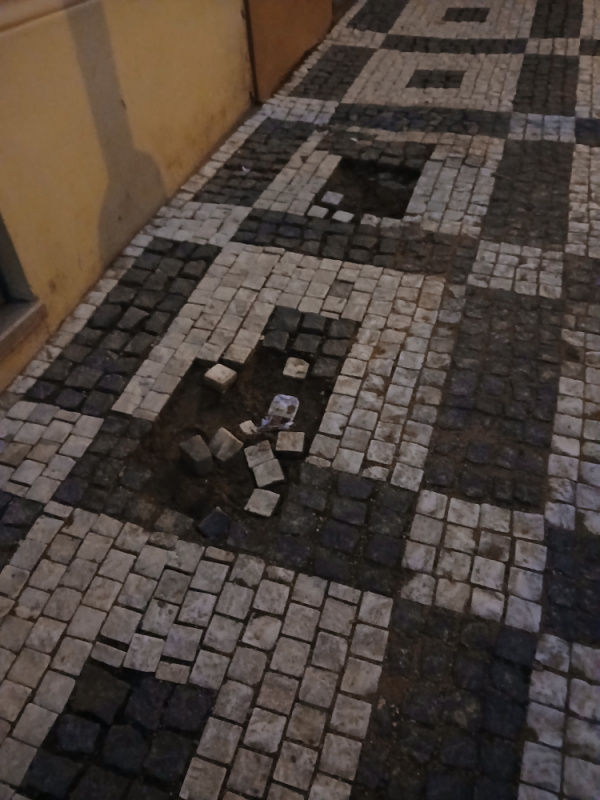 Díry v chodníku Čajkovského mezi cisli 24 a32 stejně tak na rohu Čajkovského a Sladkovského náměstí. Prosím o opavu