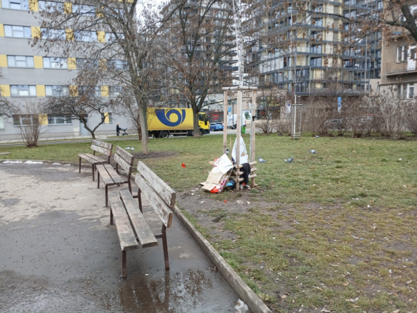 prosím, v parčíku u Nákladového nádraží za lavickami u stromu nepořádek
