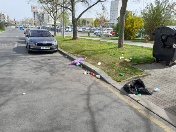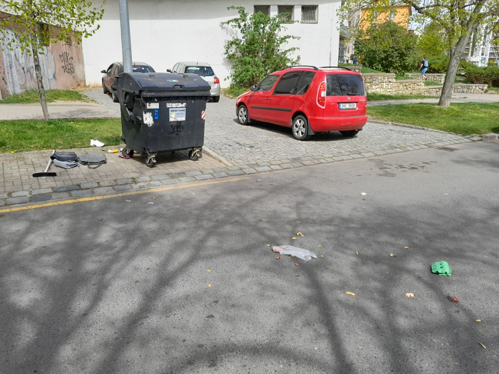 Dobrý den, v ulici je větrem rozfoukany bordel. Na silnici, na chodníku, v trávě. Prosím o úklid, vypadá to tady jako na skládce :(