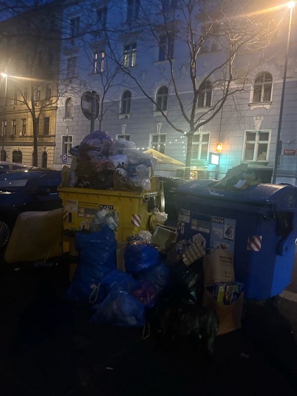 Ulice Velehradská, tříděný odpad. Byly odebrány popelnice na tříděný odpad a zůstaly dvě. V tuto chvíli je to naprosto neudržitelné. Každý den je tady enormní množství odpadu, které se válí po ulicích mimo, mnohdy se to táhne až hodně daleko, když to vítr rozfouká, prosím o vyřešení.