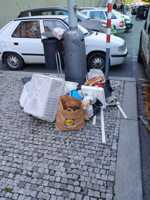 Nahlášeno telefonicky. Větší množství odpadu pod odpadkovým košem.