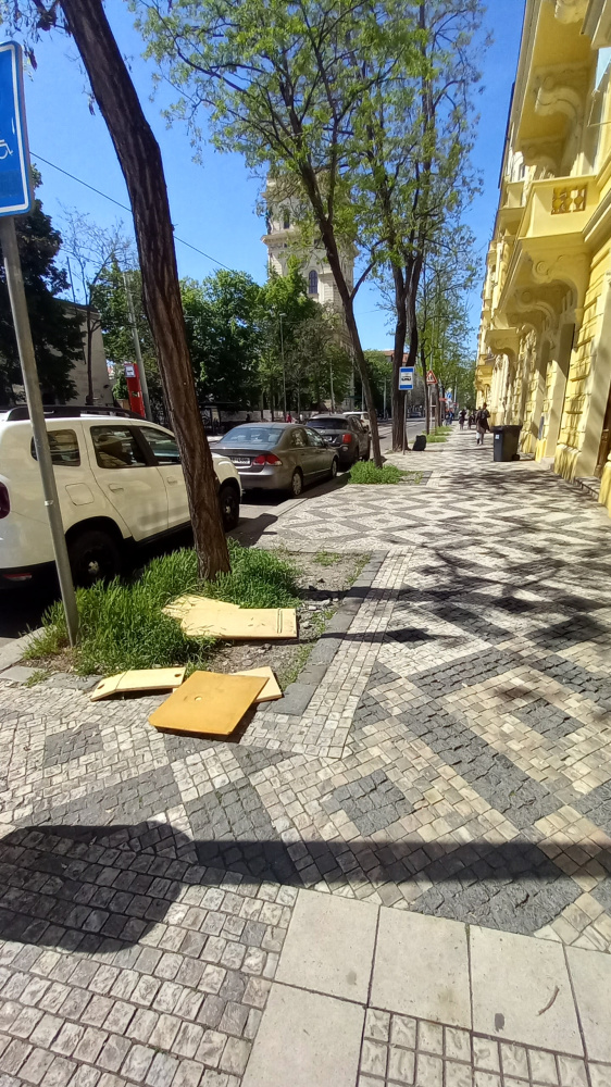 Prosím o odvoz desek z rabátka z ulice Korunní č. 73.