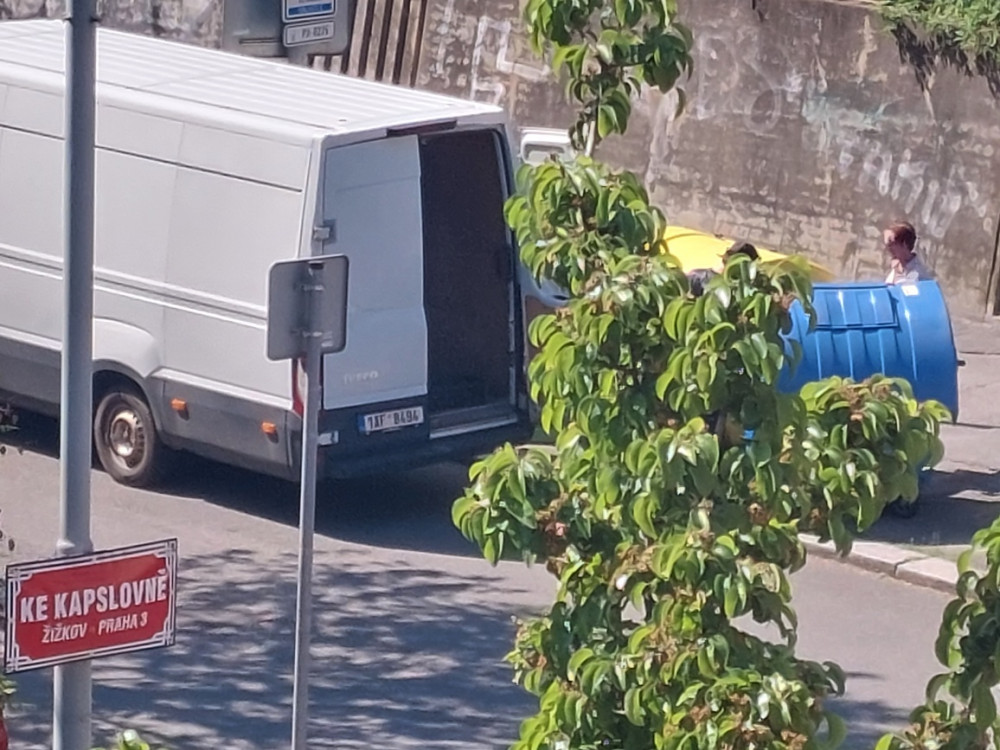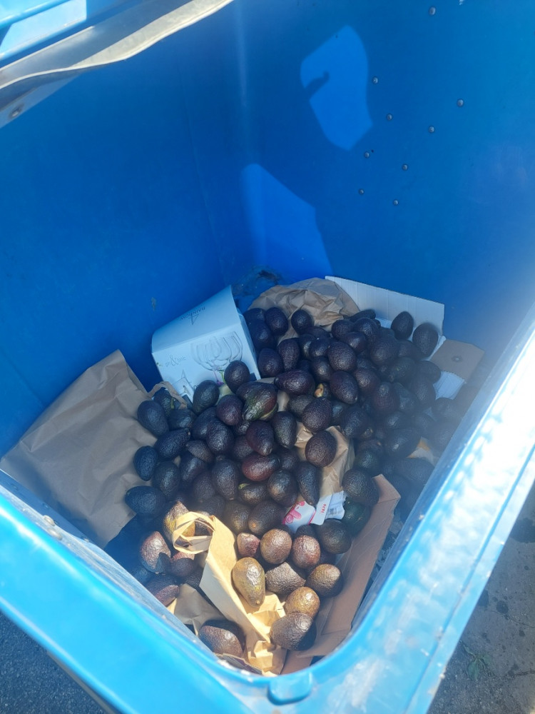 před chvílí zde zastavila dodávka a vyházela několik desítek avokád do kontejneru na papír.