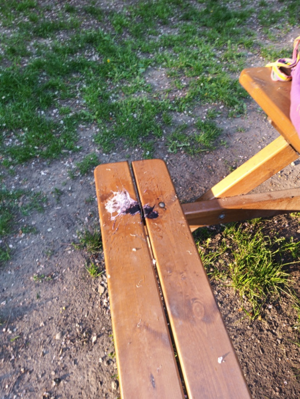 exkrementy od ptáků na lavice ve vnitro bloku potřebuje vyčistit