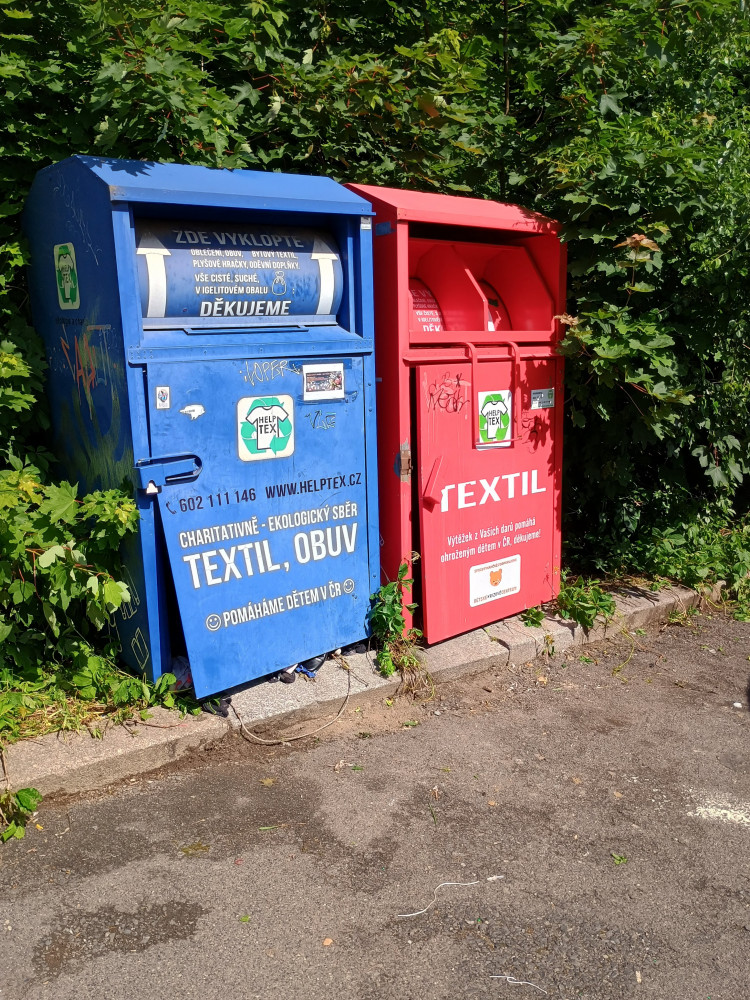 Poničené kontejnery na sběr oblečení. OPĚT