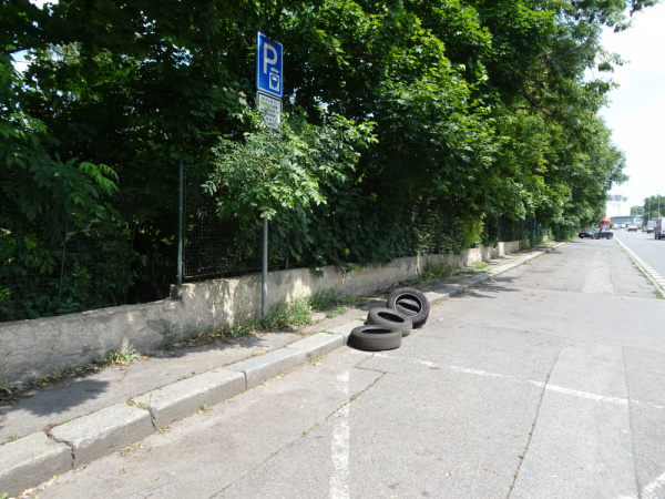 Dobry den, v ulici u Nakladoveho nadrazi jsou na vozovku vyhozeny stare pneumatiky. Prosim o uklid.