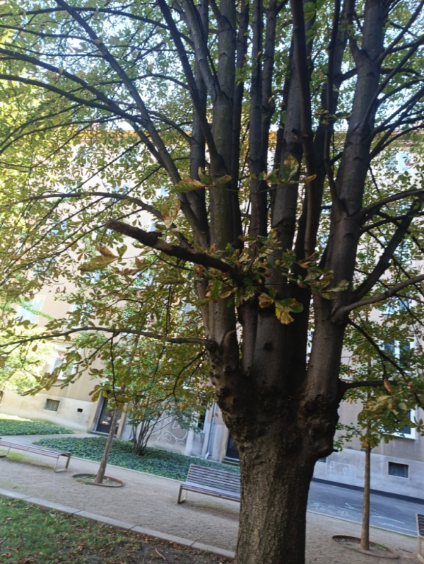 suché větve na stromech které padají na děti, ve vnitrobloku plus spadané listí napadené klíněnkou chtělo by to profi arboristicko firmu ne Pat a mata s TSK