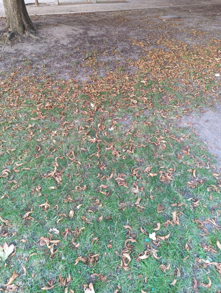 Doplňujeme předchozí odpověď: Prořezání stromů a pečlivý úklid jsou plánovány zhruba na polovinu září, shrabání listí dříve. Spad suchého listí za horkého počasí je přirozený jev - obvykle se takto spadané listí sesbírá při sekání trávy, za horka ale trávu nesekáme, takže je spad listí viditelný. Klíněnka na jírovcích/kaštanech je bohužel rozšířeným škůdcem a na velkých stromech je použití chemického ošetření neefektivní/neúčinné.
