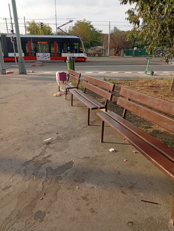 nepořádek pod lavičkou a na lavičce...kolem laviček