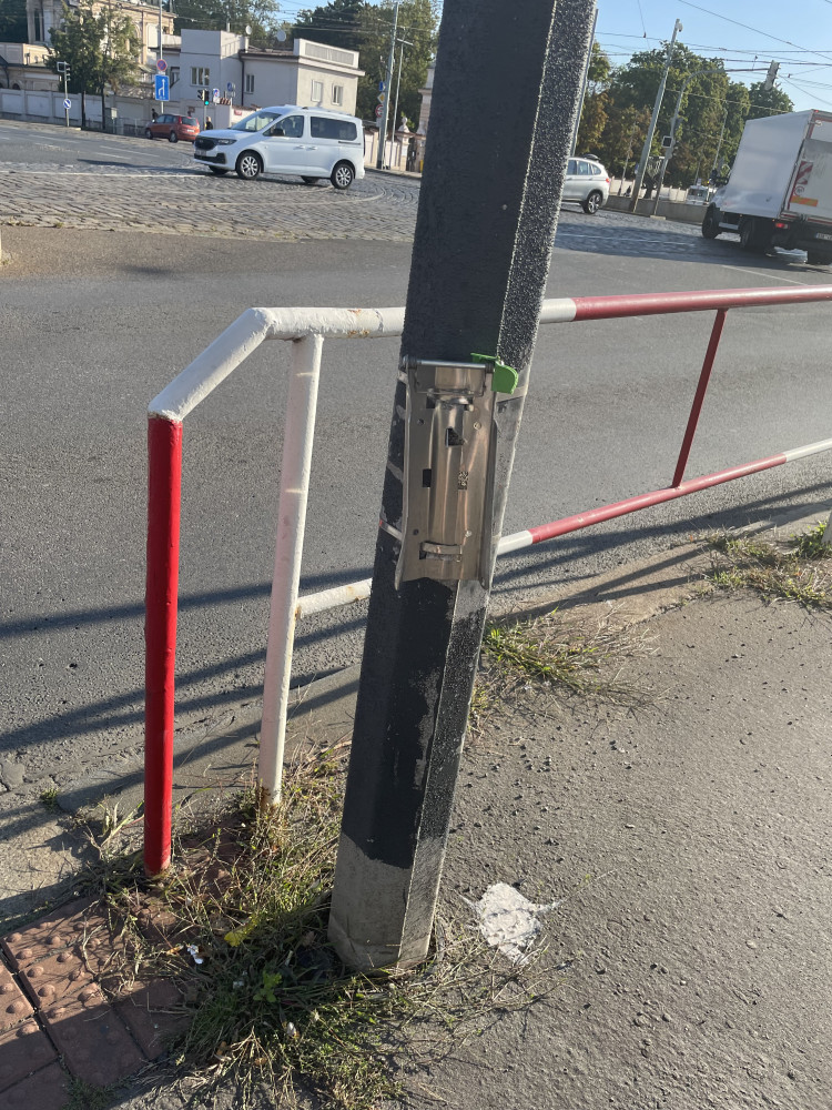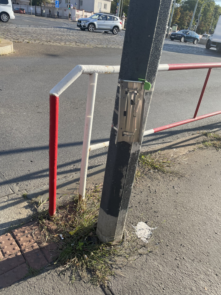 Chybějící odpadkový koš ,zůstal jen zbytek