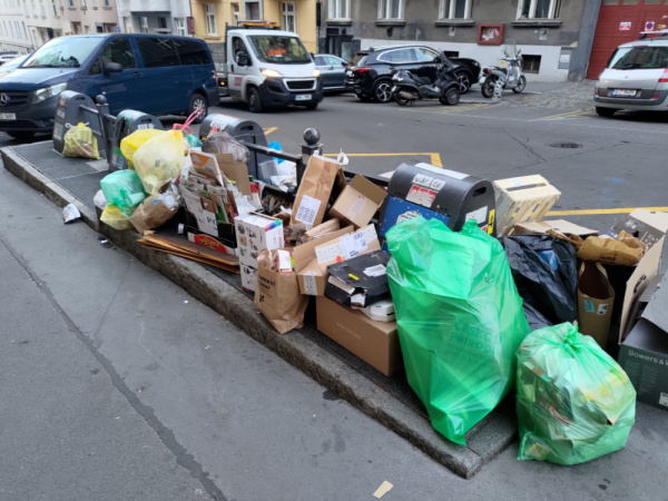 Nepořádek u popelnic na rohu ulic Čajkovského x Kubelíkova. Prosím o úklid.