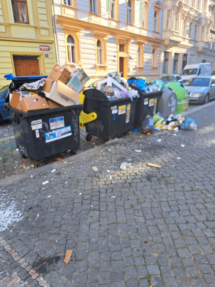 děkujeme za Váš podnět. Předali jsme ho organizaci AVE CZ, která kontejnery na tříděný odpad vyváží a za pořádek kolem kontejnerů odpovídá. Úklid jednotlivých stanovišť kontejnerů na tříděný odpad probíhá pravidelně podle stanoveného harmonogramu (od 6:00 do do 22:00 každý den včetně sobot a nedělí).