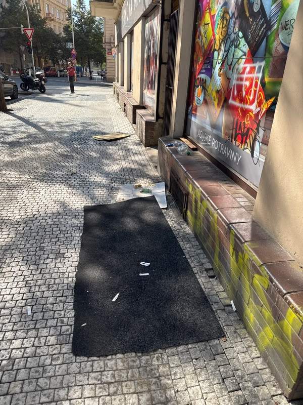můžeme zajistit pořádek pouze na pozemcích ve správě MČ Praha 3. Uvedený chodník je již na území Prahy 2. Doporučuji využít obdobnou aplikaci pro MČ P2 - hlaseni.tmapy.cz.