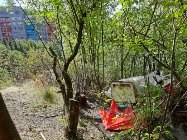 Nepořádek pravděpodobně po bezdomovcích.