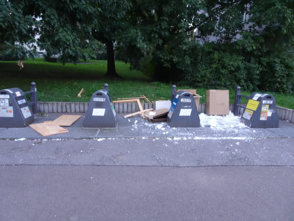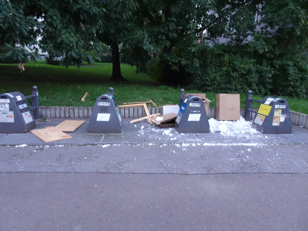 v ulici Habrova je okolo kontejenru na trideny odpad neporadek. rozbity nabytek atd.