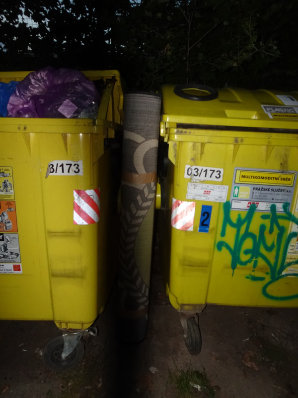 Dobry den, mezi kontejnery v ulici na Trebesine je vyhozeny koberec. prosim o uklid koberce.