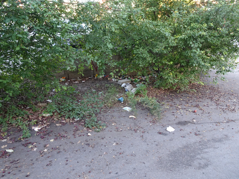 u zidky Penny marketu v ulici Malesicka je neporadek, plechovky a smeti.