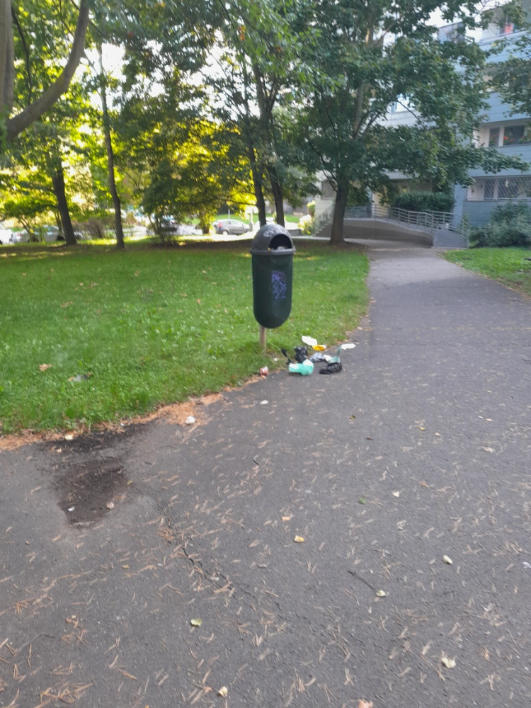 děkujeme za Váš podnět. Tato plocha by měla být pravidelně uklízena každý den pracovníky Pražských služeb, kteří by v rámci pravidelného úklidu měli vše odstranit. Následně sami provedeme kontrolu, zda se tak skutečně stalo a případně místo poklidíme. Krásný den