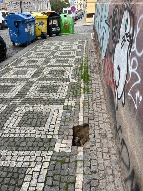 děkujeme za Váš podnět. Předali jsme ho k vyřešení organizaci TSK hl. m. Prahy, která údržbu chodníků zajišťuje. Podněty TSK můžete zadávat také prostřednictvím online formuláře: zavady.tsk-praha.cz.