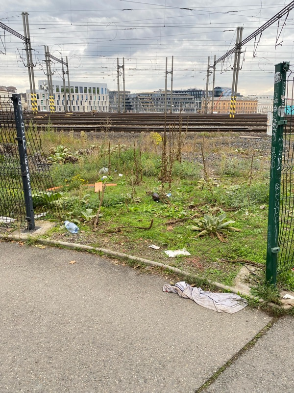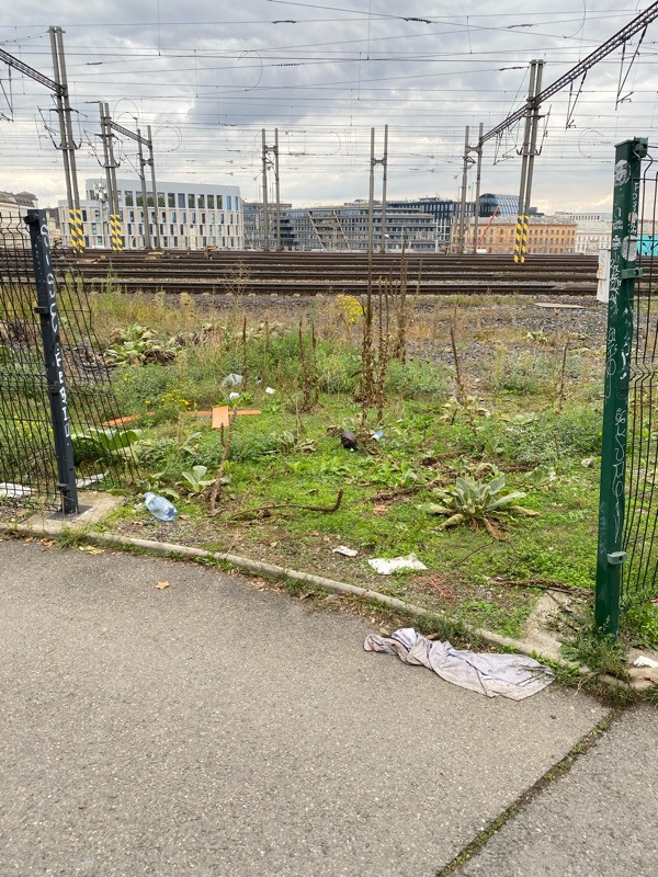 Dobrý den, děkujeme za Váš podnět. Pořádek můžeme zajistit pouze na pozemcích ve správě MČ Praha 3. V tomto případě se jedná o soukromý pozemek. Pokusíme se majitele (České dráhy) kontaktovat. Děkujeme za pochopení. Krásný den Vaše Čistá Trojka