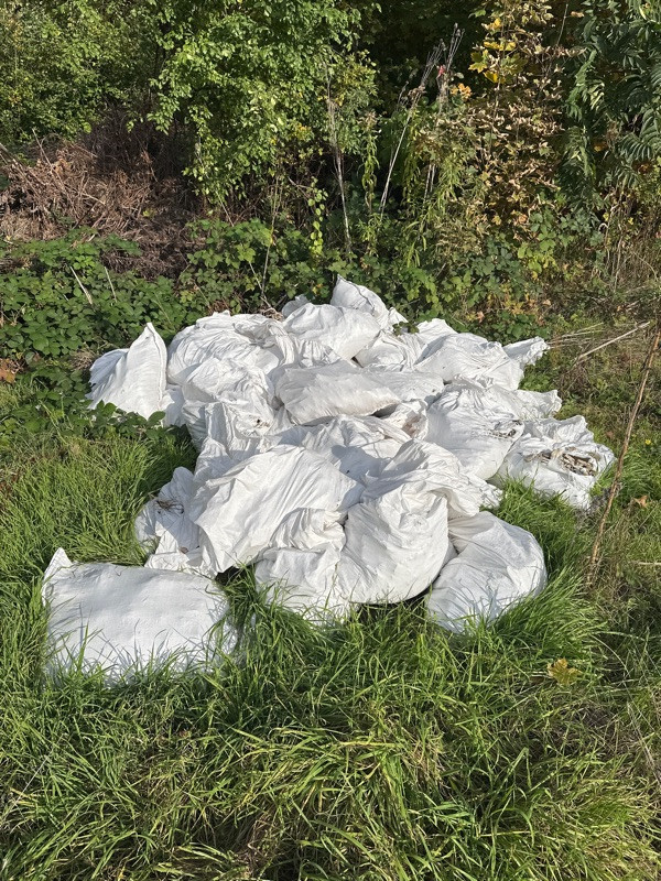 děkujeme za Váš podnět. Pytle se nachází na soukromém pozemku, za plotem. Můžeme zajistit úklid pouze na pozemcích ve správě MČ P3. Děkujeme za pochopení.