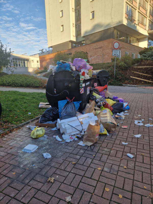 děkujeme za Váš podnět. O problematické situaci víme a věříme, že se v brzké době zlepší. Jsou přislíbené další kontejnery. Poklidíme hned jak to bude možné.