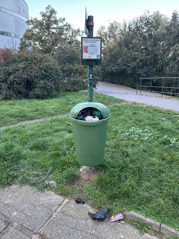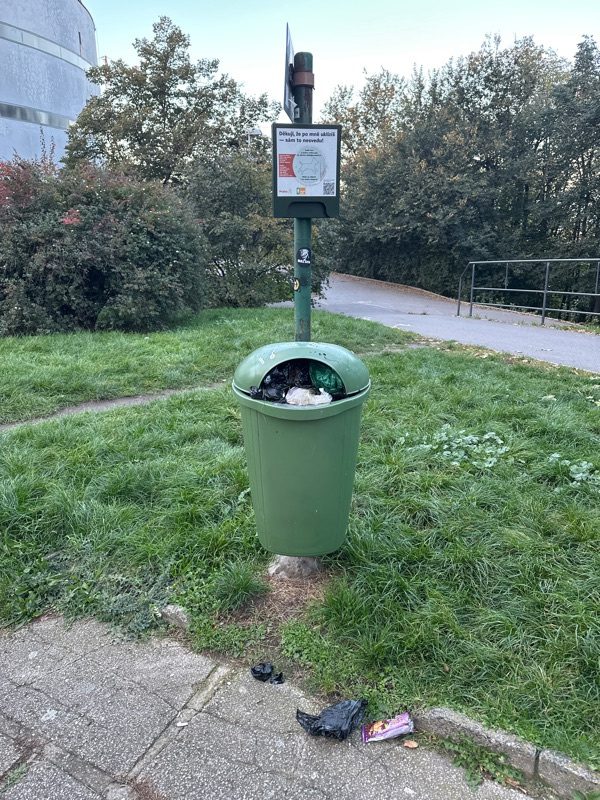 Obavám se, že vámi zmíněná frekvence zde dodržena nebyla. Těch košů je kolem Pražačky v podobném stavu hned několik.