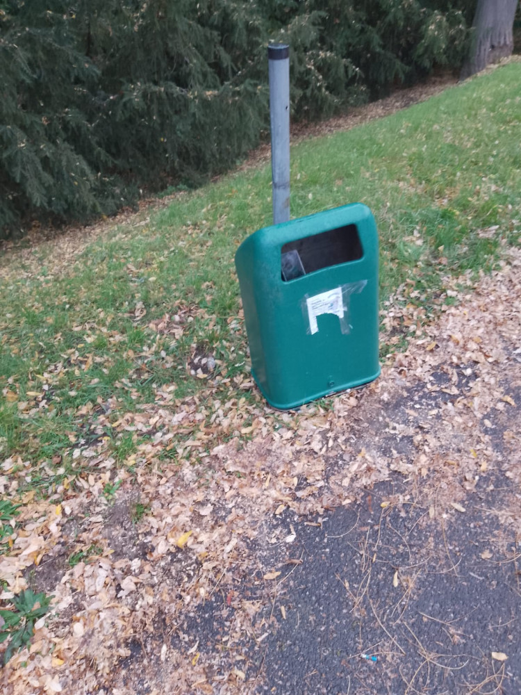 Dobrý den, děkujeme za Váš podnět. Vyřešili jsme a poklidili. Koš nahlásíme k opravě. Krásný den Vaše Čistá Trojka