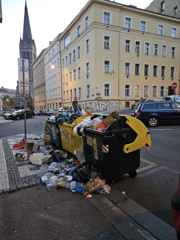 Dobrý den, děkujeme za Váš podnět. Tato plocha by měla být pravidelně uklízena pracovníky svozové služby. V rámci pravidelného úklidu by měli vše odstranit. Následně, hned jak to bude možné, provedeme kontrolu, zda se tak skutečně stalo a případně místo poklidíme. Krásný den Vaše Čistá Trojka