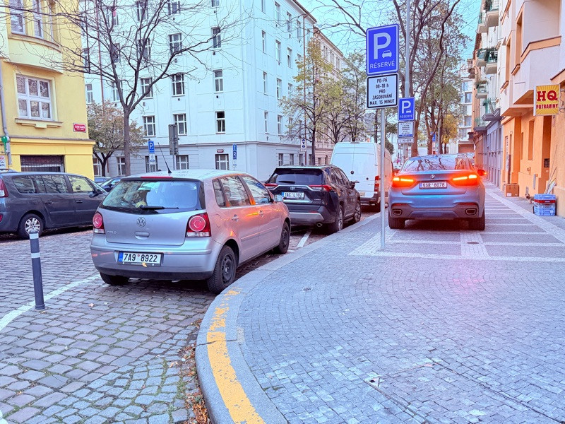 Nově zřizované sloupky na rozích křižovatek se míjejí účinkem. Tohle auto parkovalo na rohu Zelenky-hajského a Biskupcovy včera odpoledne dlouhé hodiny. Parkovalo? O Vietnamci na chodníku a druhém v zásobovací zóně nemluvě.