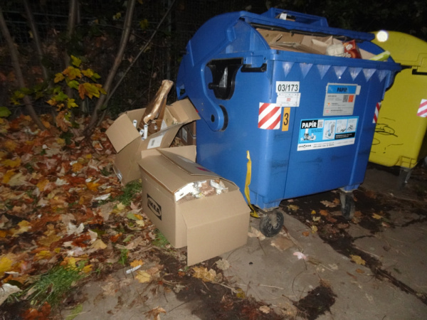 Dobry den, u kontejneru na trideny odpad jsou vyhazene krabice od Ikea nabytku s plasty a hlavne se zbytky kovovych konstrukci nabytku. Prosim o uklid. (sberne nadoby u tenisovych kurtu)