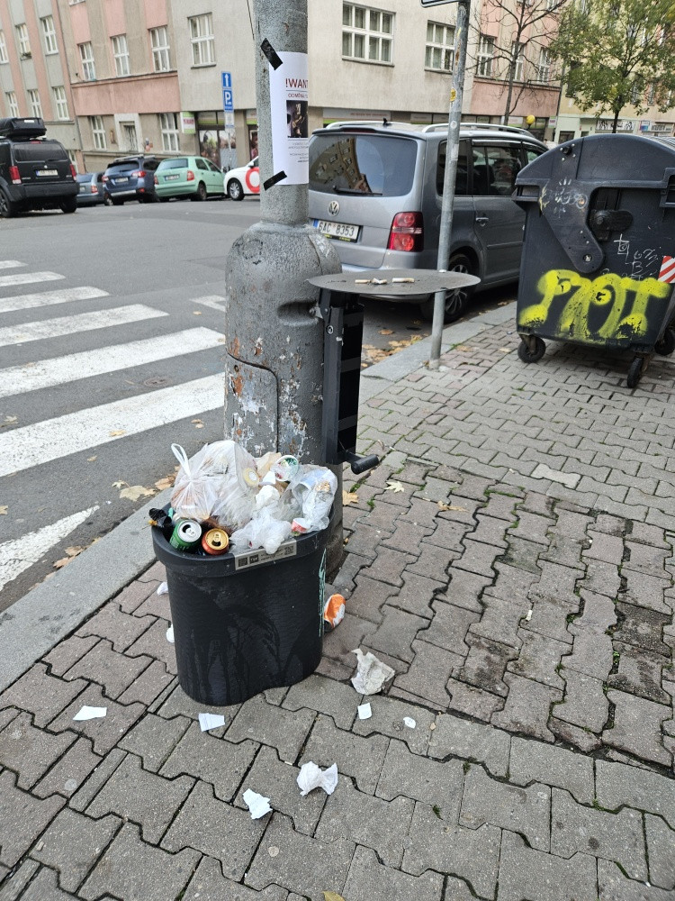 děkujeme za Váš podnět. Předali jsme ho k vyřešení organizaci TSK hl. m. Prahy, která má správu těchto odpadkových košů na starosti.