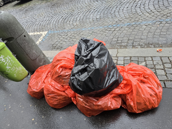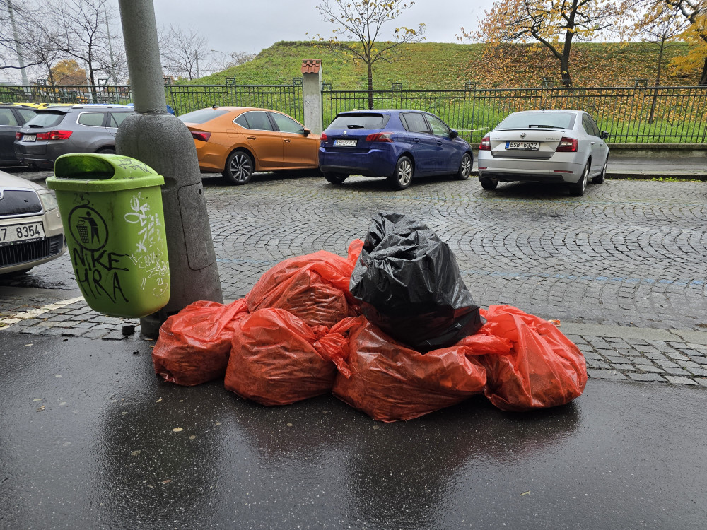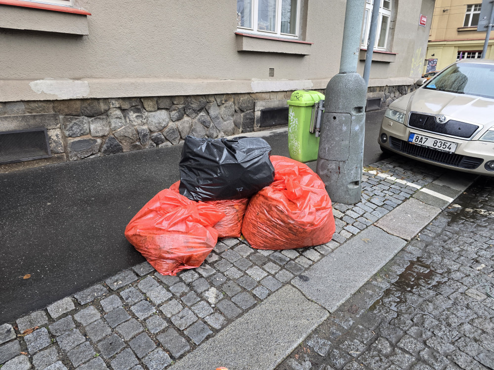 Nekdo nechal na ulice, na parkovaci mistnost tasky odpadu