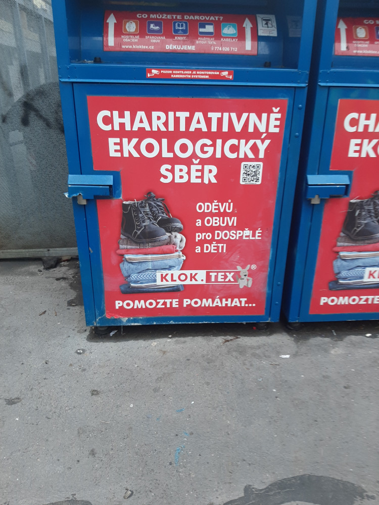 U Klotexu složený nábytek, matrace, kartony a další nepořádek. Blokuje parkovací místo. Nepořádek i kolem Klotexu.