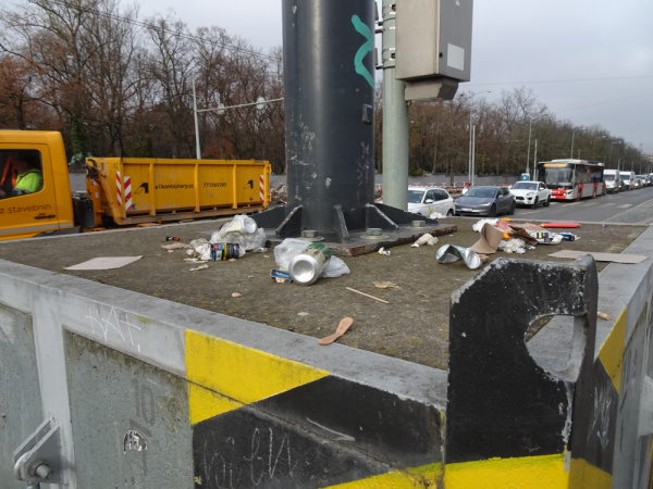 v ulici zelivskeho na bloku sloupu je neporadek.