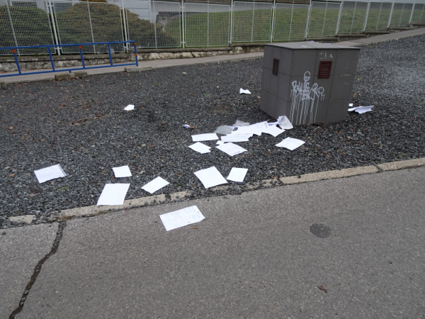 v ulici Pod Kaplickou jsou rozhazene faktury papiry atd.
